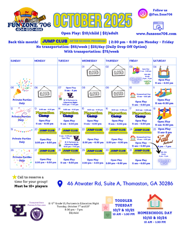 Feel free to bring your own food, beverages, and decorations! Plus, enjoy a generous 15 minutes before and after your party for setup and cleanup. Celebrate in style with a Private Party Area and access to a Shared Play Area for even more fun!
